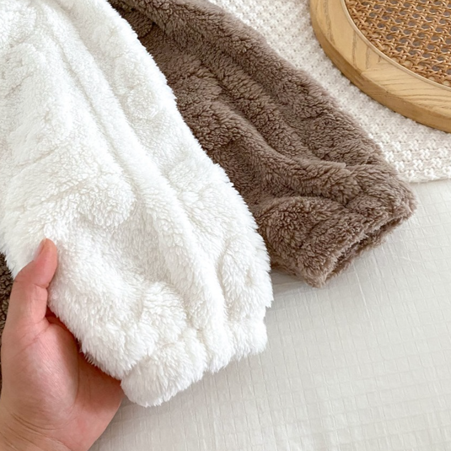 - Design Highlight: Ultra-warm, plush fabric designed for sleeping, featuring cute bear face pockets on the top.